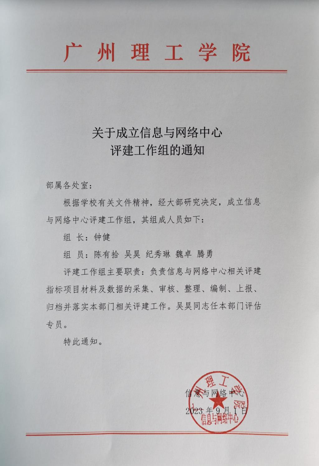 关于成立信息与网络中心评建工作组的通知
