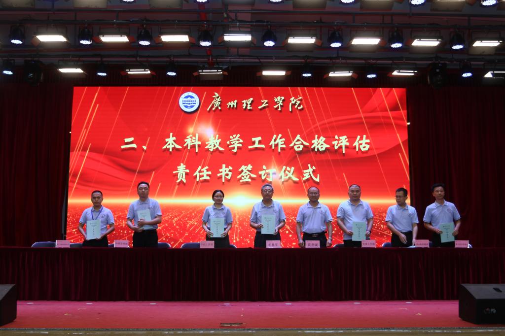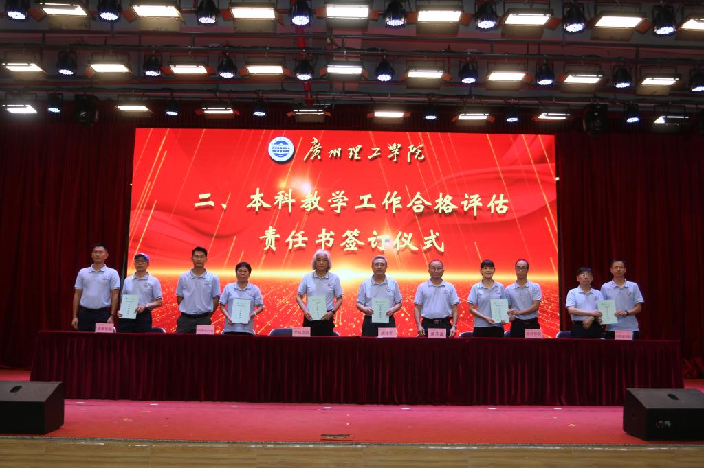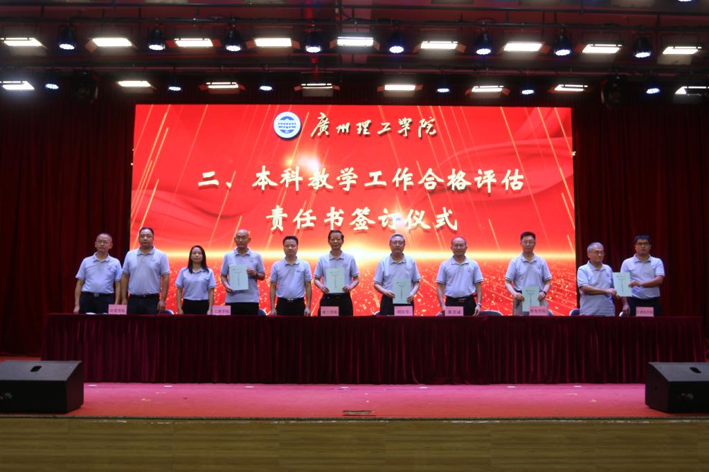 在张世梅主持和全校教职工共同见证下,胡社军、黄圣诚代表学校,分别和二级学院与机关部处党政负责人签订本科教育教学工作合格评估责任书,并与党政干部代表、专家学者代表、青年教师代表、学生代表共同出席启动仪式,正式启动本科教育教学工作合格评估。