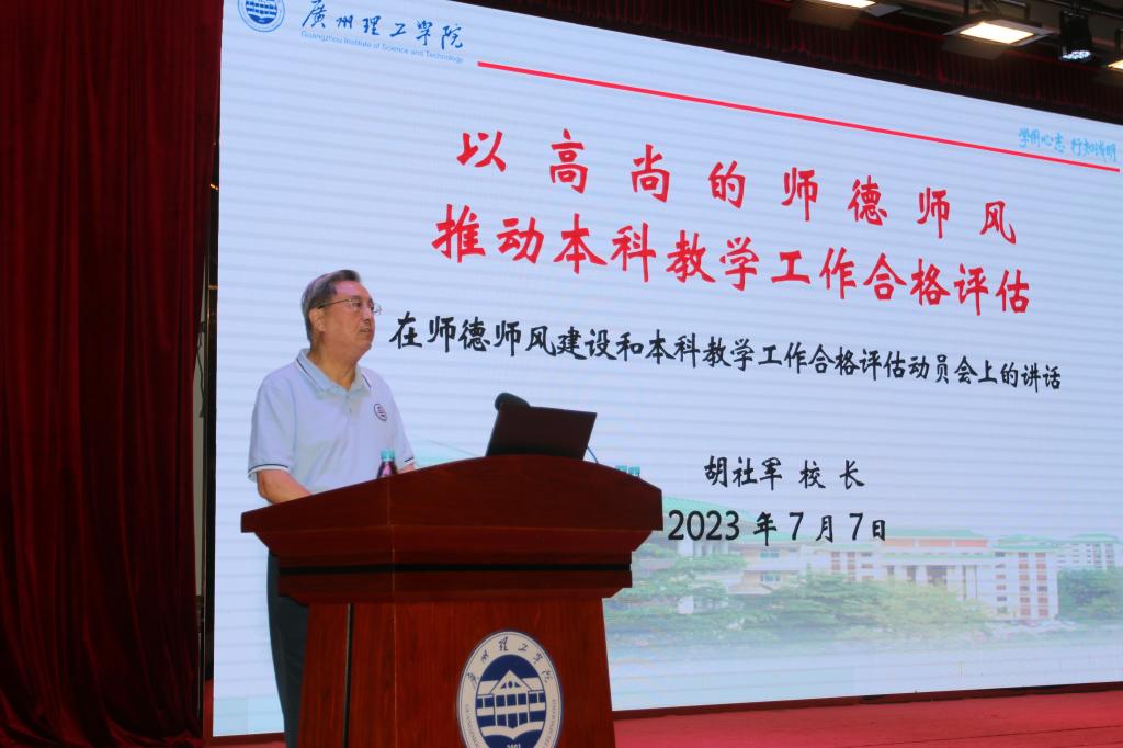 胡社军作了题为《以高尚的师德师风推动本科教育教学工作合格评估》的动员讲话。